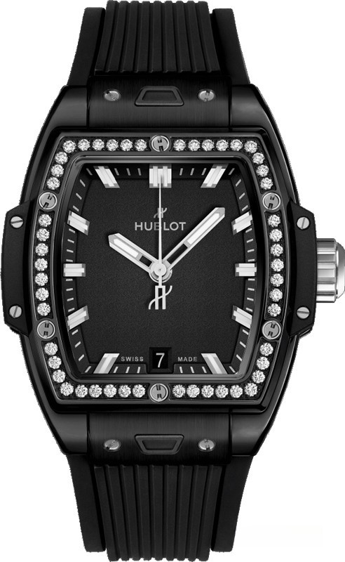 Часы Hublot Spirit of Big Bang 39 mm представлены в корпусе из керамики с безелем из белых бриллиантов размером 39 мм и водонепроницаемостью до 100 метров. Внутри корпуса установлен автоматический механизм с запасом хода 50 часов. На черном циферблате отображаются часы, минуты, секунды, дата. Часы комплектуются ремешком из кожи аллигатора с застежкой из нержавеющей стали. Безель из 50-ти белы бриллиантов общим весом 1 сt.