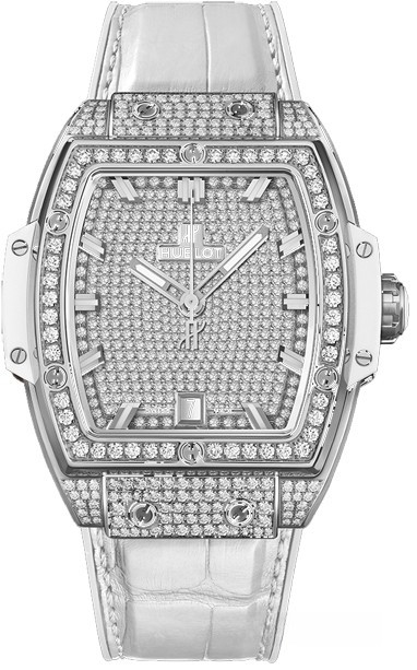 Часы Hublot Spirit of Big Bang Titanium Full Pave 39 mm представлены в корпусе из титана размером 39 мм и водонепроницаемостью 100 метров. Внутри корпуса установлен автоматический механизм, Калибр HUB1710, обладающий запасом хода 50 часов. На циферблате из белых бриллиантов отображаются часы, минуты, секунды, дата. Часы поставляются на ремешке из кожи аллигатора с вставкой из титана. Корпус инкрустирован белыми бриллиантами.