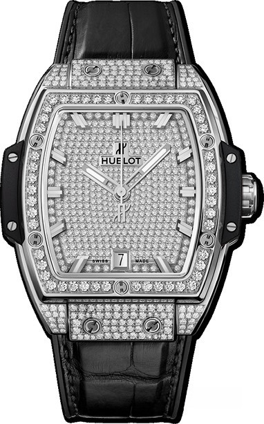 Часы Hublot Spirit of Big Bang Titanium Full Pave 39 mm представлены в корпусе из титана размером 39 мм и водонепроницаемостью 100 метров. Внутри корпуса установлен автоматический механизм, Калибр HUB1710, обладающий запасом хода 50 часов. На циферблате из белых бриллиантов отображаются часы, минуты, секунды, дата. Часы поставляются на ремешке из кожи аллигатора с вставкой из титана. Корпус инкрустирован белыми бриллиантами.