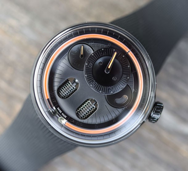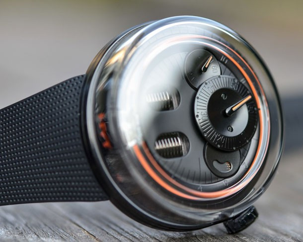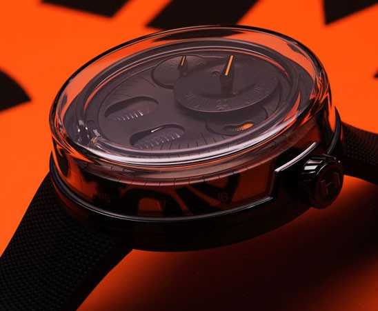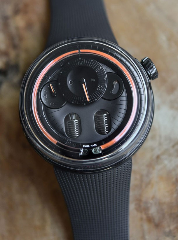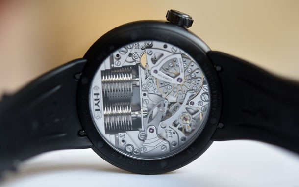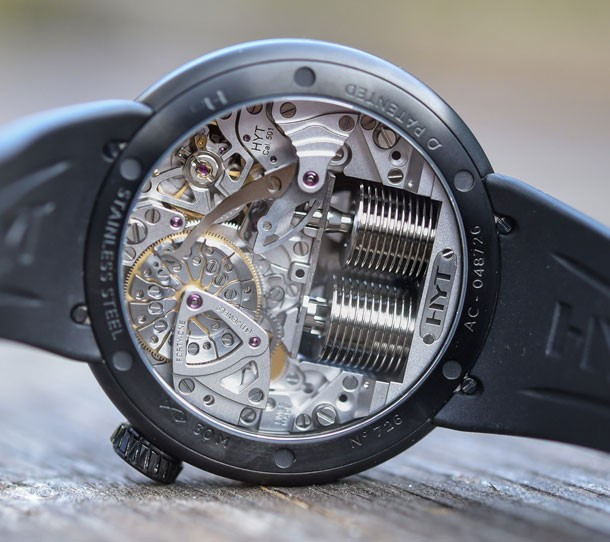 Часы Hyt H0 представлены в корпусе размером 48.8 х 18.7 мм из нержавеющей стали с черным покрытием DLC и водонепроницаемостью до 30 метров. Внутри корпуса установлен механизм с ручным заводом и 65-часовым запасом хода. На черном циферблате отображаются часы, минуты, секунды, запас хода. Часы поставляются на каучуковом ремешке с титановой вставкой.