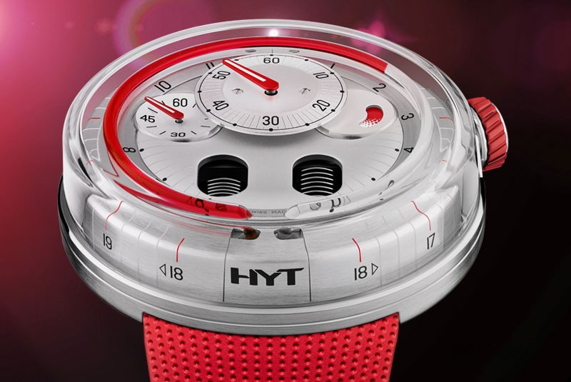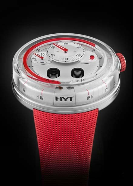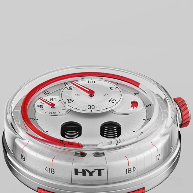 Часы Hyt H0 представлены в корпусе размером 48.8 х 18.7 мм из нержавеющей стали с водонепроницаемостью до 30 метров. Внутри корпуса установлен механизм с ручным заводом и 65-часовым запасом хода. На серебристом циферблате отображаются часы, минуты, секунды, запас хода. Часы поставляются на каучуковом ремешке с титановой вставкой.