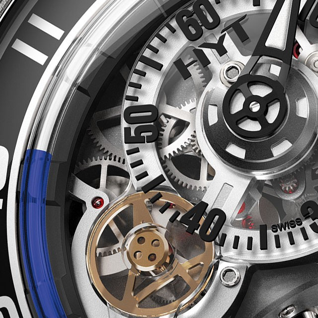 Часы HYT H4 RC44 выпущены в корпусе из карбона, размером 51 х 17.9 мм и водонепроницаемостью 30 м. Внутри корпуса установлен механизм с ручным заводом, Калибр HYT с запасом хода 65 часов. На серебристом скелетированном циферблате отображаются часы, минуты, секунды. Часы комплектуются ремешком из каучука и Nomex с титановой вставкой. Часы выпущены ограниченной серией 10 штук.