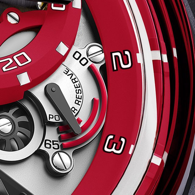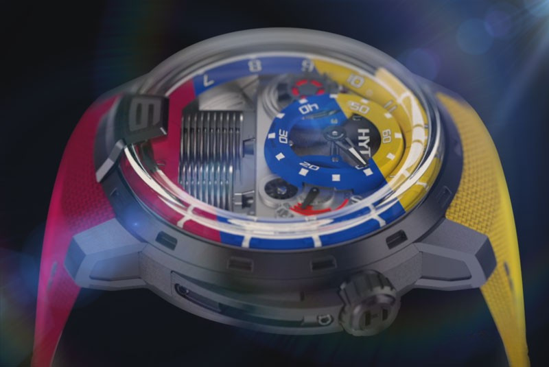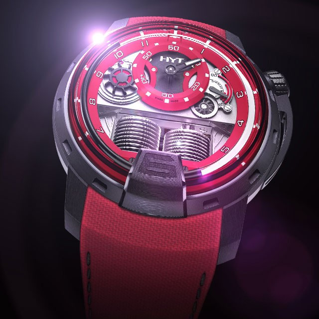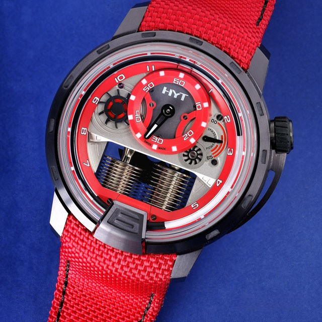 Часы HYT H1 представлены в корпусе размером 48.8 х 17.9 мм из титана с покрытием PVD и водонепроницаемостью до 100 метров. Внутри корпуса установлен механизм с ручным заводом, обладающий запасом хода 65 часов. На красном циферблате отображаются часы, минуты, секунды, запас хода. Часы поставляются на текстильном ремешке с титановой вставкой. Серия ограничена 10 шт.