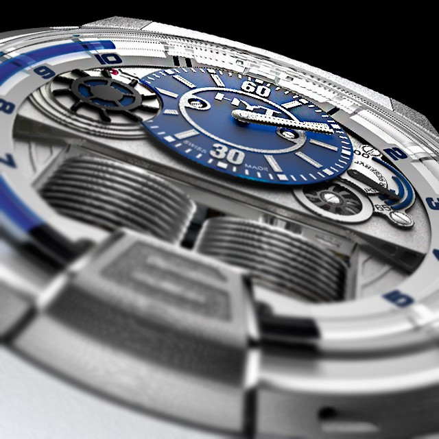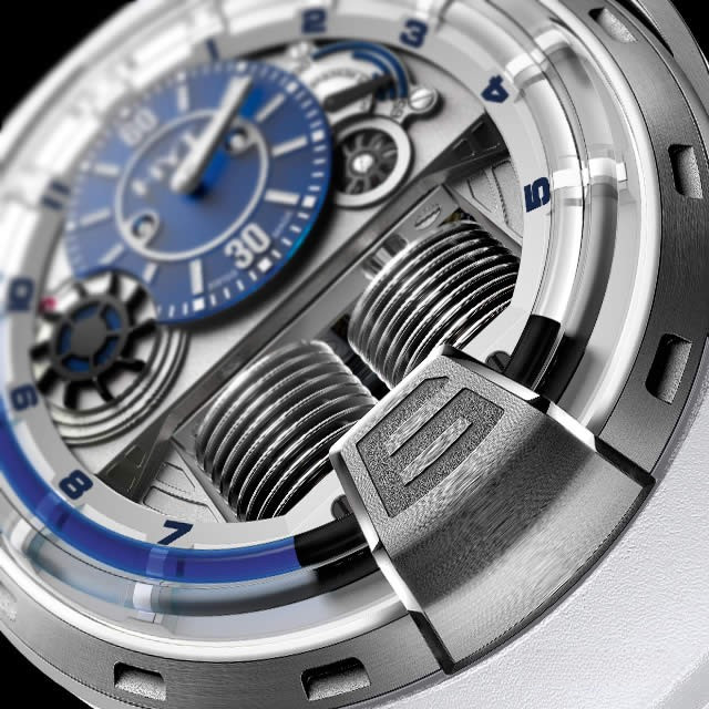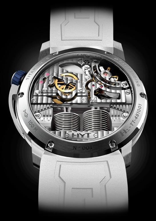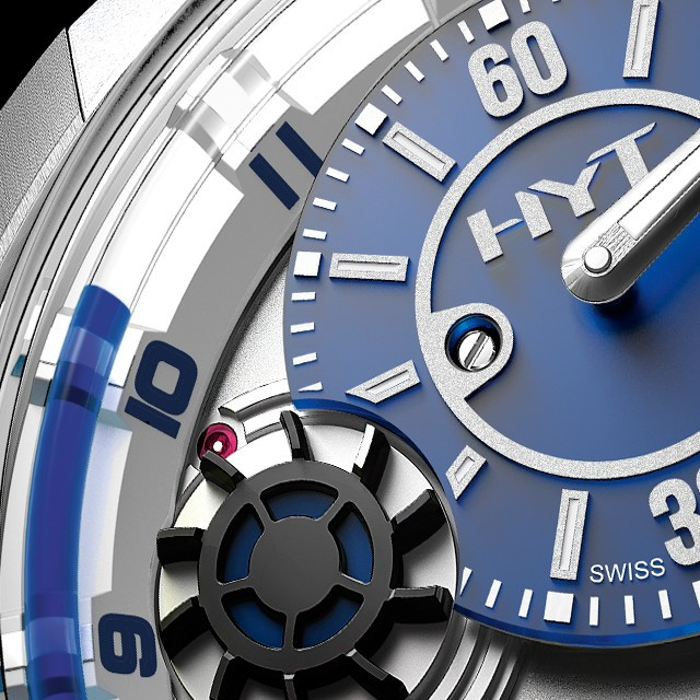 Часы HYT H1 представлены в корпусе размером 48.8 х 17.9 мм из титана с водонепроницаемостью до 100 метров. Внутри корпуса установлен механизм с ручным заводом, обладающий запасом хода 65 часов. На синем циферблате отображаются часы, минуты, секунды, запас хода. Часы поставляются на каучуковом ремешке с титановой вставкой. Серия ограничена 50 шт.