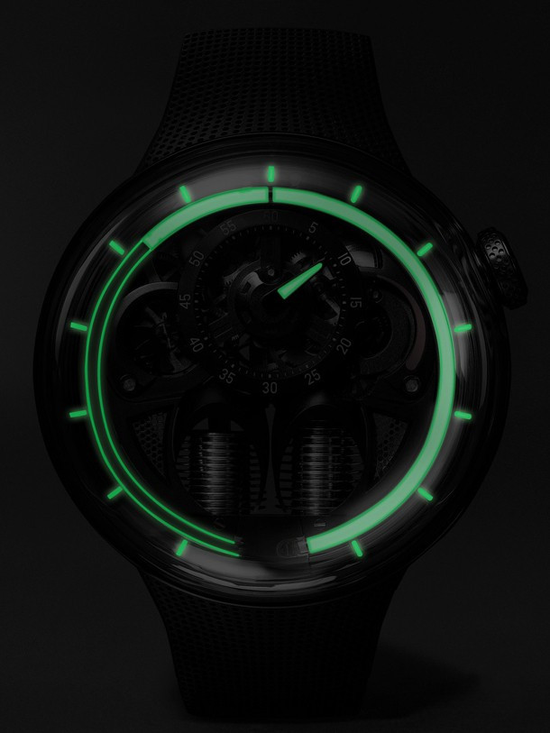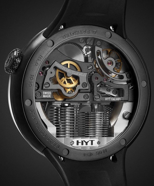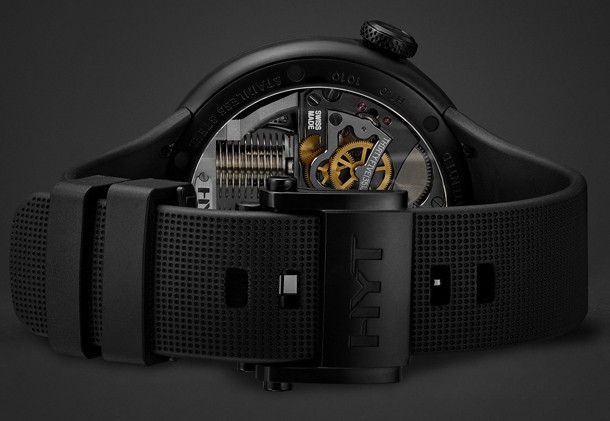 Часы HYT H1.0 Mr. Porter представлены в корпусе размером 48.x 20.08 мм из нержавеющей стали с покрытием PVD водонепроницаемостью до 50 метров. Внутри корпуса установлен механизм с ручным заводом, Калибр HYT 401, обладающий запасом хода 65 часов. На черном циферблате отображаются часы, минуты, секунды, запас хода. Часы поставляются на каучуковом ремешке с вставкой из нержавеющей стали. Серия ограничена - 5 шт.