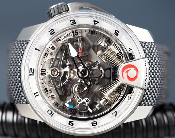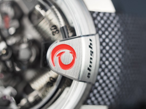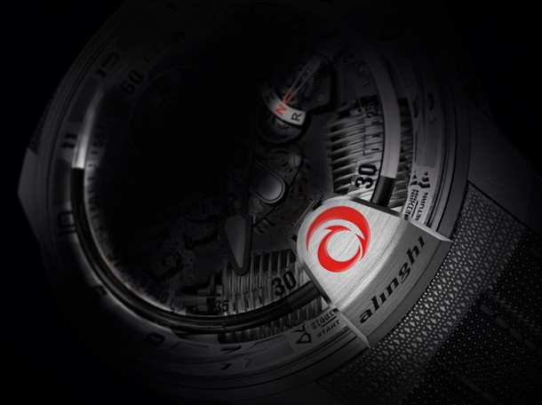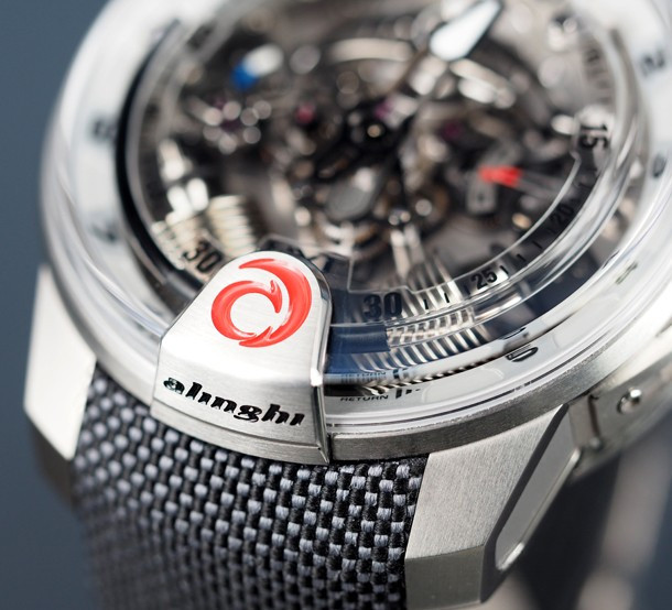 Часы H2 Alinghi изготовлены из титана и представлены в корпусе размером 48.8 х 17.9 мм. На 6-ти часах корпус украшает гравированный логотип Alinghi. Циферблат покрыт сапфировым стеклом с антибликовым покрытием. Задняя крышка корпуса прозрачная. Водонепроницаемость корпуса до 50 метров. Циферблат серый. Механизм с ручным заводом обладает запасом хода 8 дней. Балансовая частота 21 600 пк/час, 28 камней. Функции: часы, минуты, индикатор позиции коронки, термальный индикатор. Часы поставляются на текстильном ремешке с титановой втсавкой. Модель выпущена ограниченной серией 25 штук.