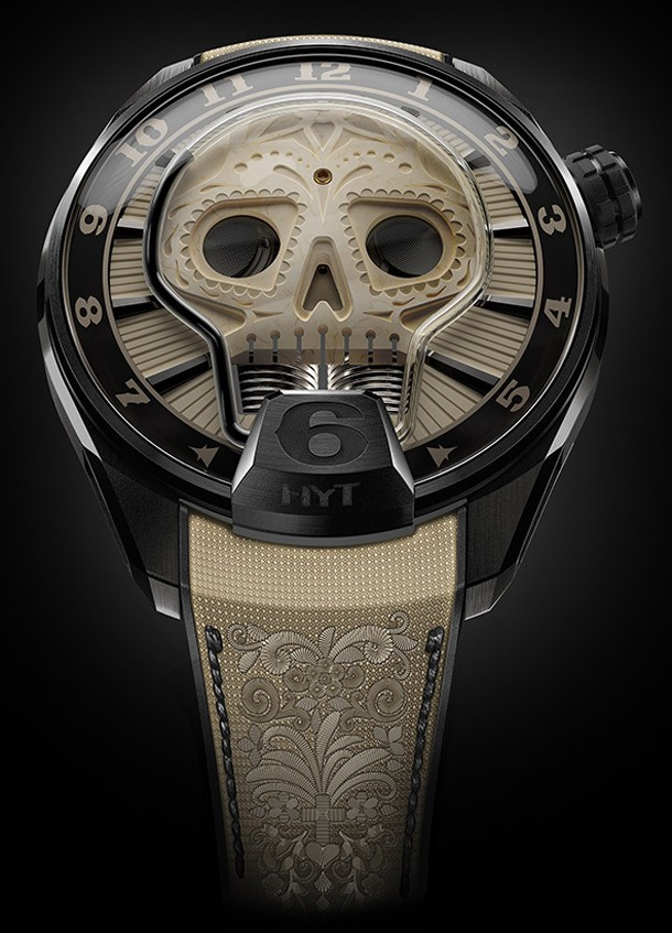 Модель Skull Vida представлена в 51-миллиметровом корпусе из полированного и сатинированного титана с черным покрытием DLC. Внутри корпуса установлен мануфактурный механизм с ручным заводом HYT, обеспечивающий 65-часовой запас хода. Циферблат имеет форму черепа и выполнен из сибирской мамонтовой слоновой кости. Этот живой материал проходит стадию стабилизации в течение нескольких месяцев. Миниатюрная скульптура на циферблате Skull Vida создана и встроена благодаря серии особо деликатных операций, выполняемых специально обученными ремесленниками. Каждый циферблат абсолютно уникален благодаря своему природному происхождению.