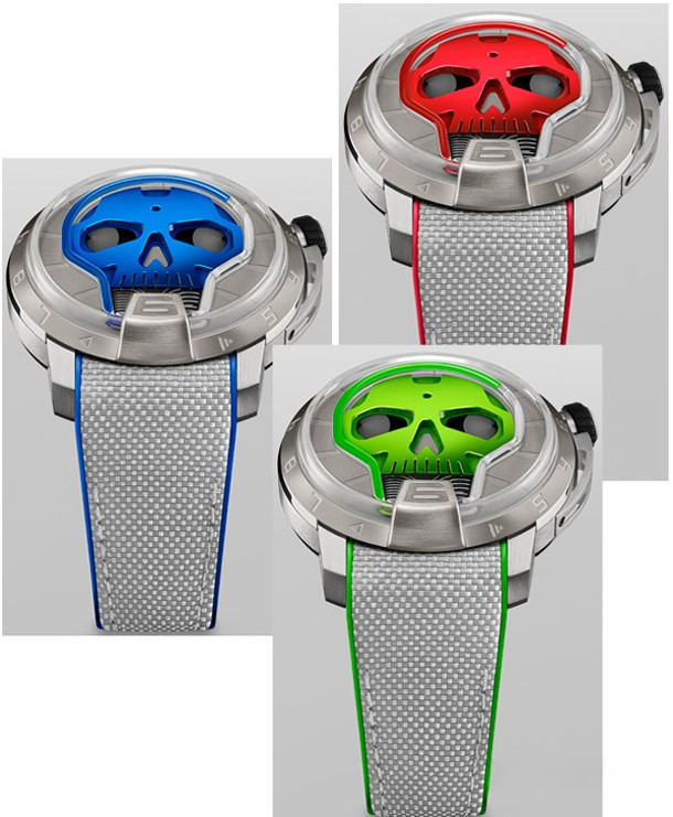 Модель Skull 48.8 представлена в 51-миллиметровом корпусе из полированного и сатинированного титана. Внутри корпуса установлен мануфактурный механизм с ручным заводом HYT, обеспечивающий 65-часовой запас хода. Циферблат имеет форму черепа и выполнен в красном цвете. Часы поставляются на текстильном ремешке с титановой застежкой. Серия ограничена 50 шт.
