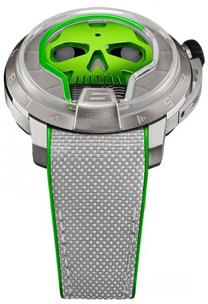 Модель Skull 48.8 представлена в 51-миллиметровом корпусе из полированного и сатинированного титана. Внутри корпуса установлен мануфактурный механизм с ручным заводом HYT, обеспечивающий 65-часовой запас хода. Циферблат имеет форму черепа и выполнен в зеленом цвете. Часы поставляются на текстильном ремешке с титановой застежкой. Серия ограничена 50 шт.