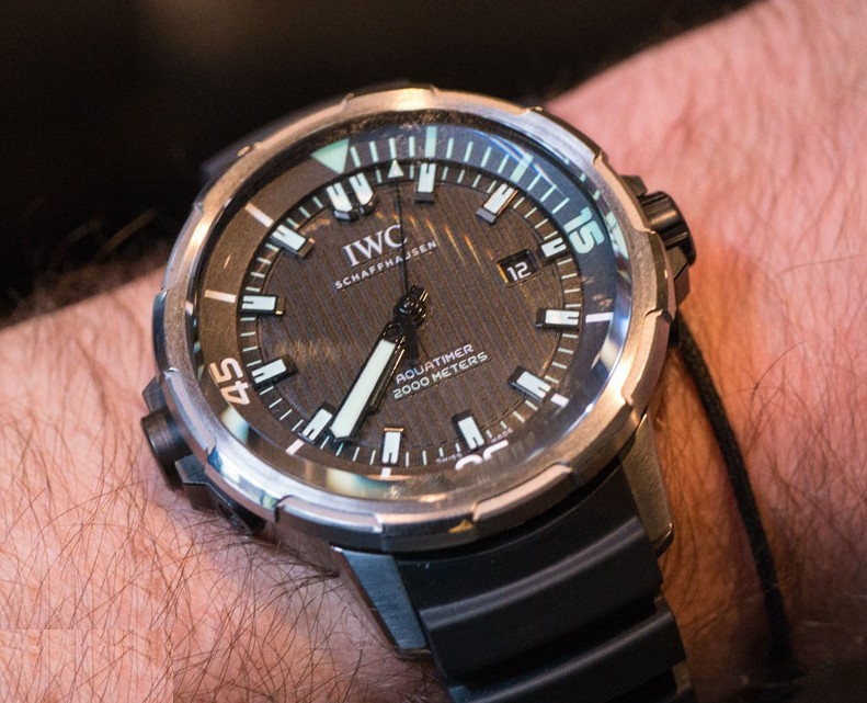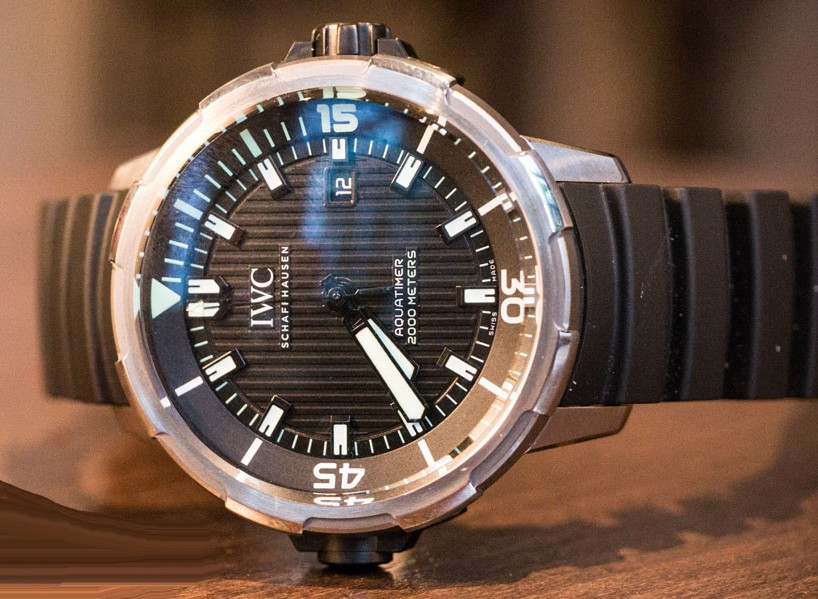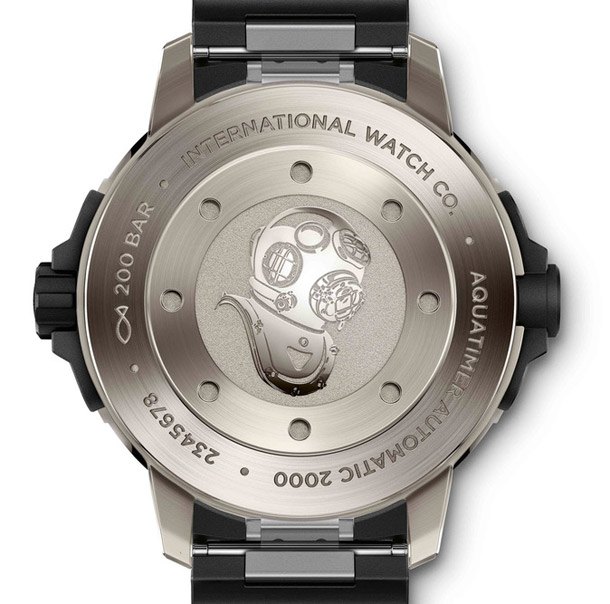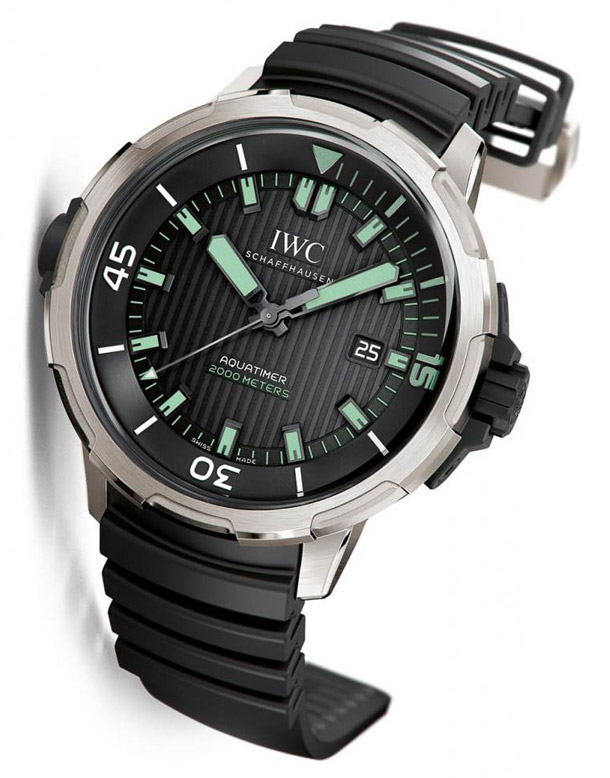 Водостойкие часы IWC Aquatimer Automatic 2000 46 mm IW358002 выпущены в круглом корпусе из нержавеющей стали. Размер составляет 46 х 20,5 мм, водонепроницаемость 2000 м, часы с вращающимся безелем. Внутри корпуса установлен автоматический механизм, Калибр 30110, обеспечивающий запас хода 40 часов. На черном гильошированном циферблате отображаются часы, минуты, секунды, дата. Часы комплектуются каучуковым ремешком с вставкой из нержавеющей стали.