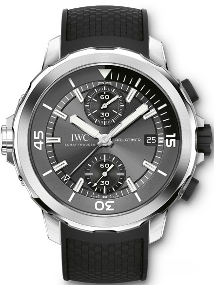 Часы в корпусе из нержавеющей стали оснащены механизмом производства IWC, Калибр 89365. Хронограф с функцией flyback, автоподзаводом и 68-часовым запасом хода, водонепроницаемость до 300 метров. Время погружения позволяет установить механический внешний/внутренний ободок, который в целях безопасности вращаться только против часовой стрелки. В рамках совместного проекта мануфактуры IWC Schaffhausen, известного издательства TASCHEN и звездного американского фотографа Майкла Мюллера была создана модель Aquatimer Chronograph Edition «Sharks», выпущенная лимитированной серией из 500 экземпляров. Эксклюзивный характер этих часов подчеркивает ремешок TASCHEN размера XXL с надписью «Sharks». Майкл Мюллер, известный всему миру своими потрясающими снимками голливудских знаменитостей, в последние годы увлекся подводными фотосъемками: он фотографирует акул в их естественной среде обитания. Серию захватывающих снимков он издал в эксклюзивном альбоме оригинального дизайна: альбом будто обрамлен в клетку, точно такую, как та, в которой Мюллер погружался под воду для фотосессии с загадочными обитателями океана. Часть средств, вырученных от продажи альбома, будет направлена на поддержку проекта Фонда Чарльза Дарвина по защите популяции акул на Галапагосских островах.