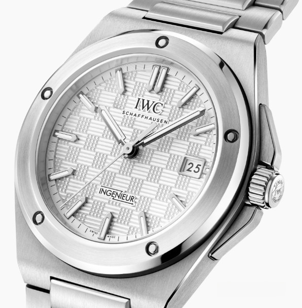 Водостойкие часы IWC Ingenieur Automatic 40 mm выпущены в корпусе из нержавеющей стали. Размер составляет 40 х 10.8 мм, водонепроницаемость 100 м. Внутри корпуса установлен автоматический механизм, Калибр 32111, обеспечивающий запас хода 5 дней. На серебристом гильошированном циферблате отображаются часы, минуты, секунды, дата. Часы комплектуются браслетом из нержавеющей стали.