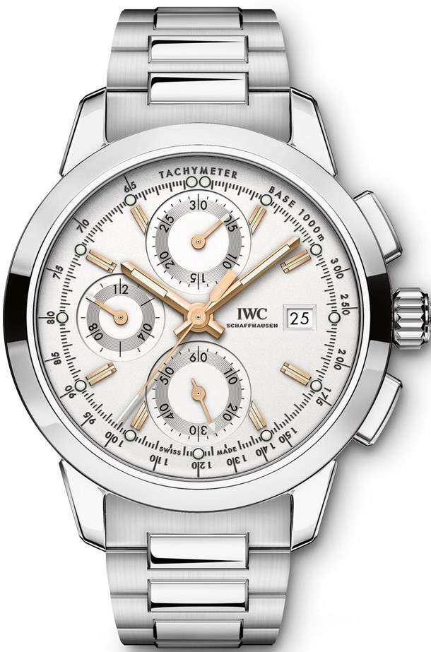 Часы IWC Ingenieur Chronograph Automatic 42 mm представлены в корпусе из нержавеющей стали размером 42 х 15 мм и водонепроницеамостью 120 метров. Внутри корпуса установлен автоматический механизм, Калибр 69375. На серебристом циферблате отображаются часы, минуты, секунды, дата, шкала тахиметра, счетчики хронографа. Часы комплектуются браслетом из нержавеющей стали.