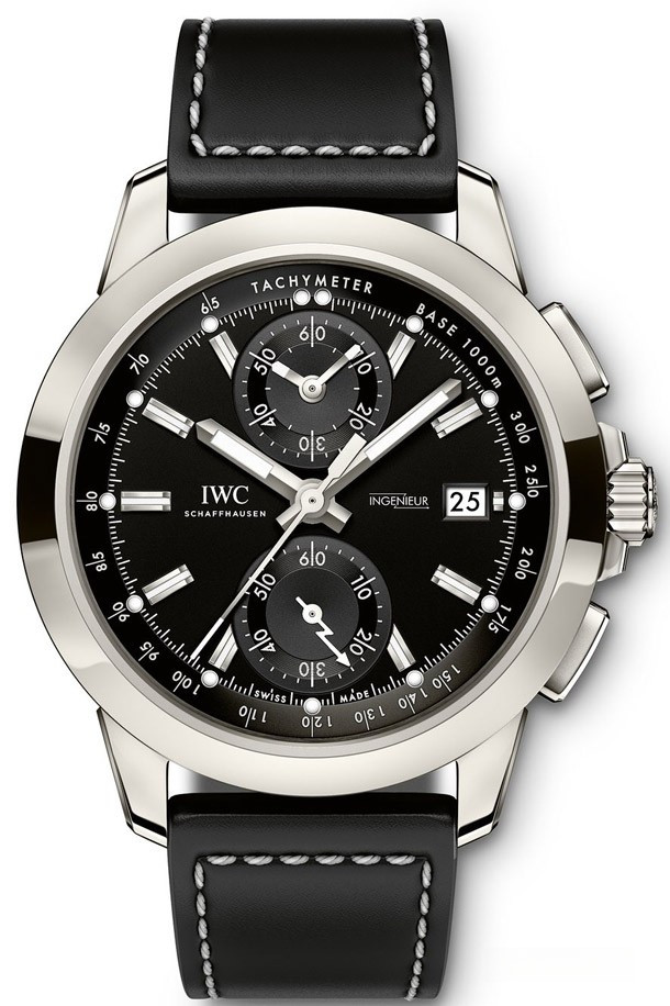 Часы IWC Ingenieur Chronograph Sport представлены в корпусе из титана размером 44 х 15 мм и водонепроницеамостью 120 метров. Внутри корпуса установлен автоматический механизм Калибр 89361. На черном циферблате отображаются часы, минуты, секунды, дата, тахиметр, счетчики хронографа. Часы комплектуются черным кожаным ремешком с титановой вставкой. Часы выпущены ограниченной серией 500 шт.