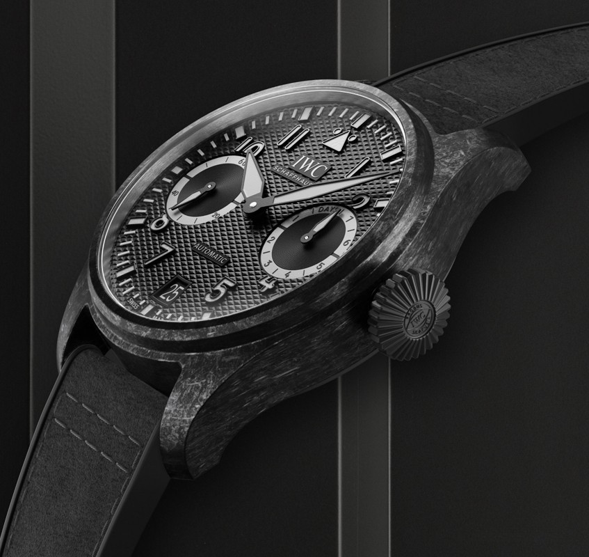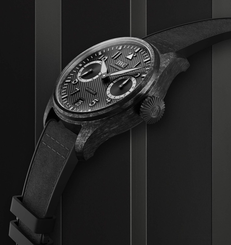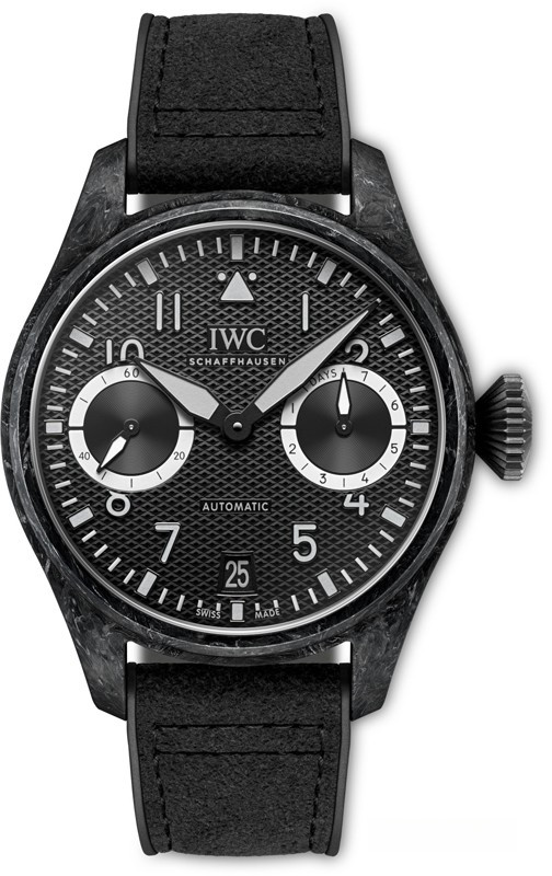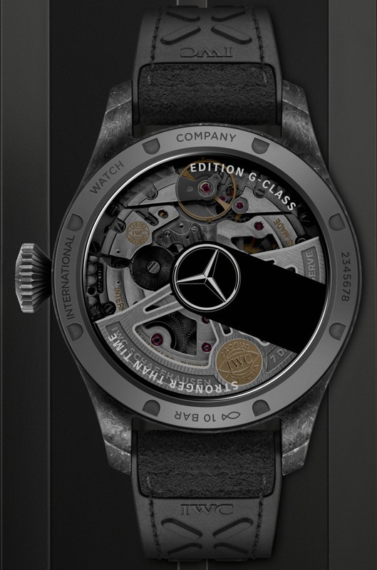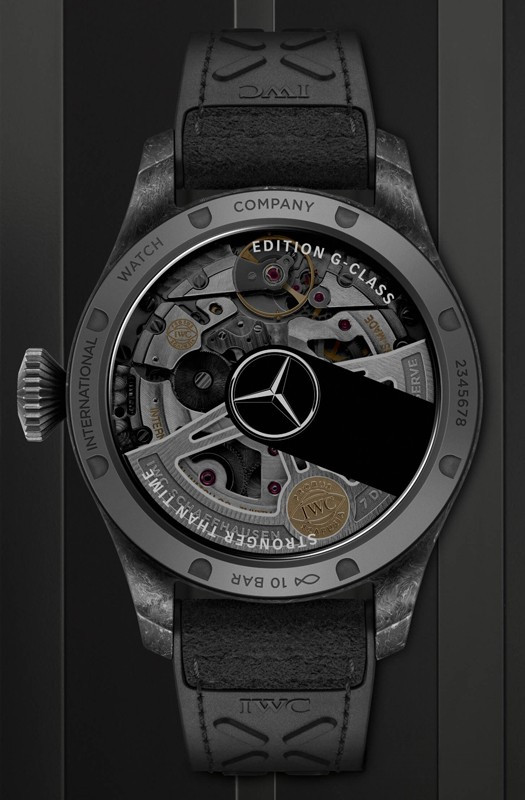 Часы IWC Big Pilot G63 представлены в корпусе размером 46.5 х 41.6 мм из керамики водонепроницаемостью 100 метров. Внутри корпуса установлен автоматический механизм, Калибр IWC 52010, обладающий запасом хода 7 дней. На черном гильошированном циферблате отображаются часы, минуты, секунда, дата, запас хода. Часы поставляются на каучуковом ремешке с керамической застежкой.