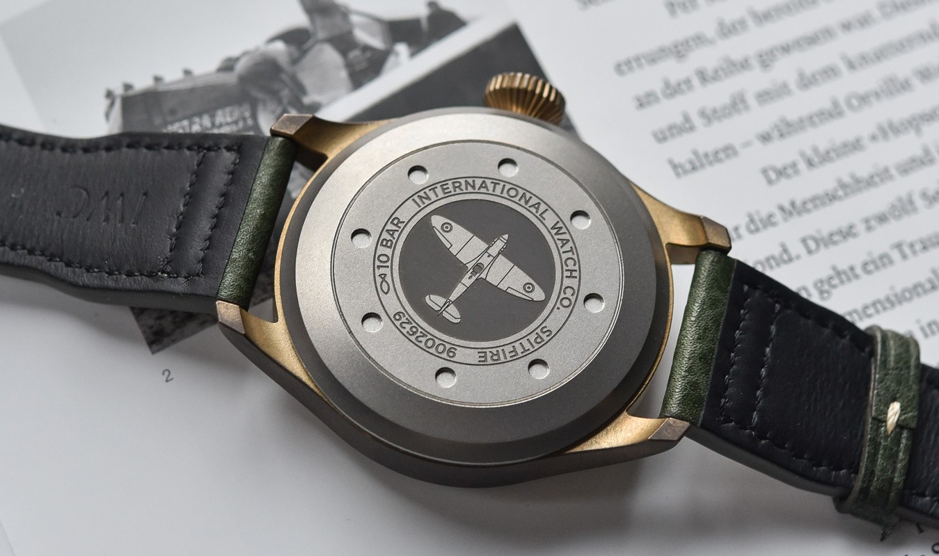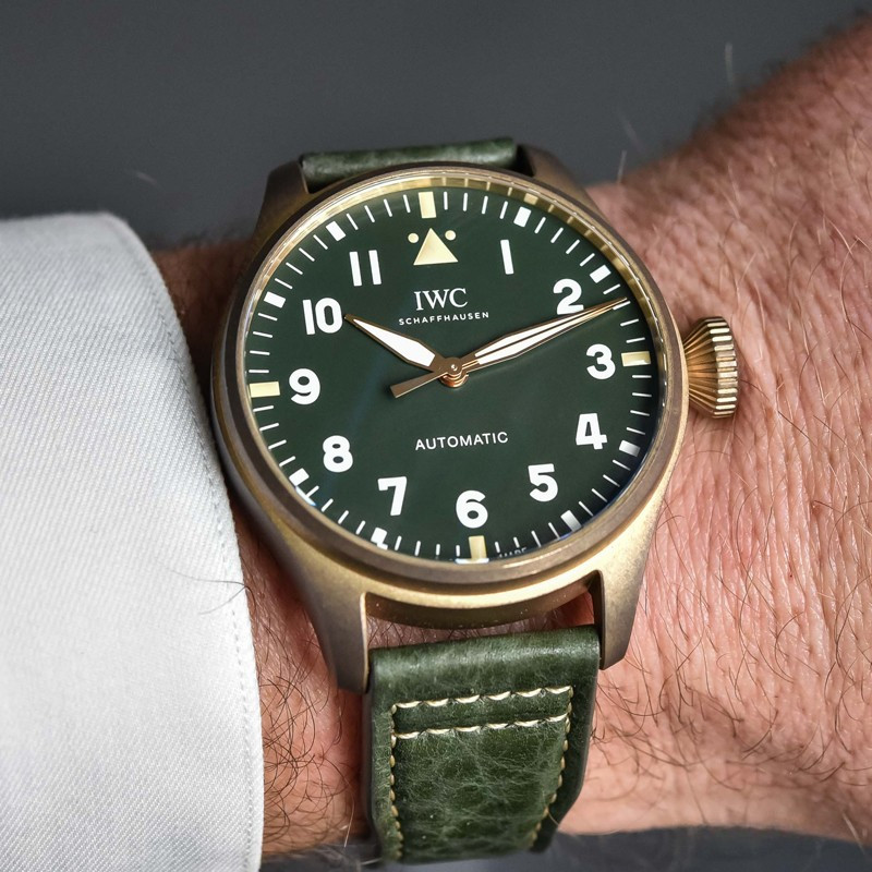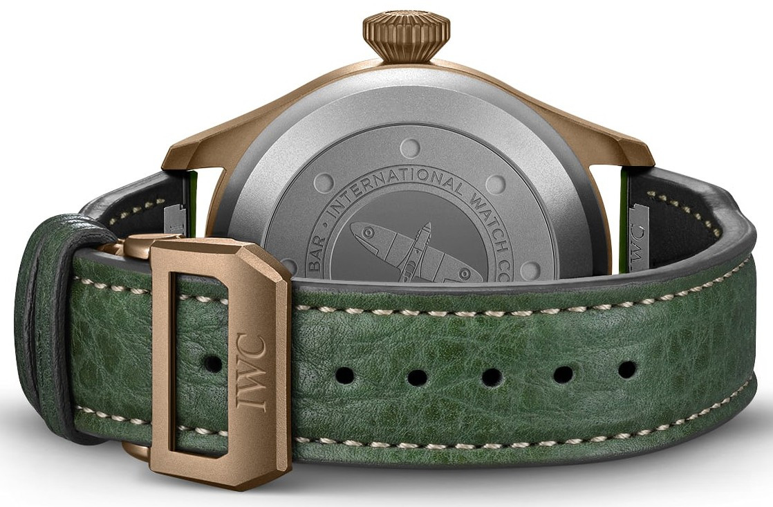 Часы IWC Pilot`s Watches Big Pilot’s Watch 43 Spitfire представлены в корпусе из бронзы размером 43 х 14.4 мм водонепроницаемостью 100 метров. Внутри корпуса находится автоматический механизм, Калибр IWC 82100, обладающий запасом хода 60 часов. На зеленом циферблате отображаются часы, минуты, секунды.Часы поставляются на кожаном ремешке с бронзовой застежкой.