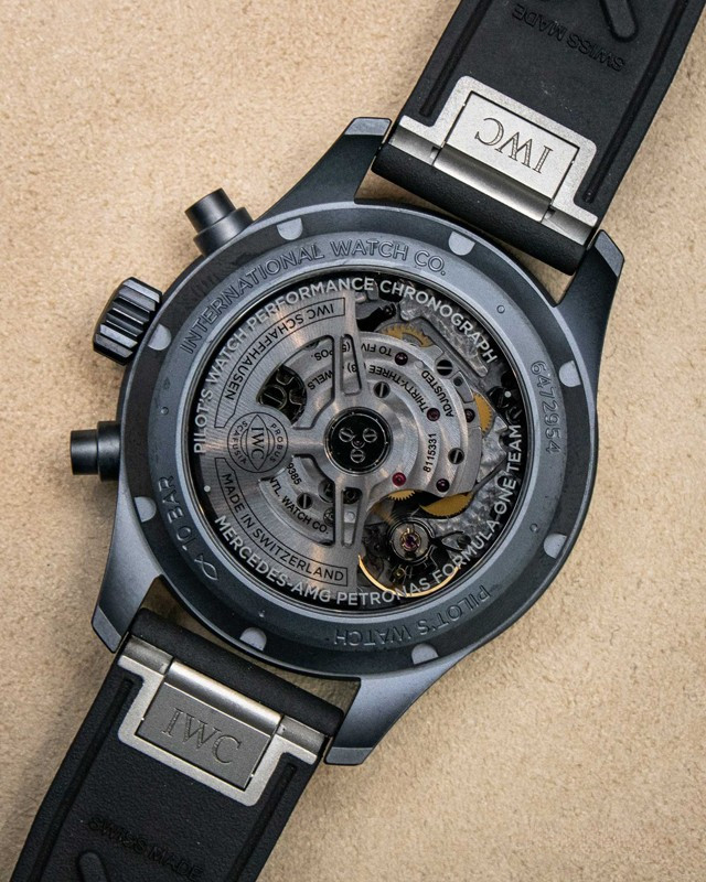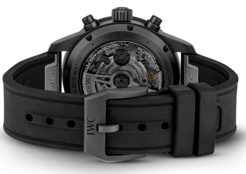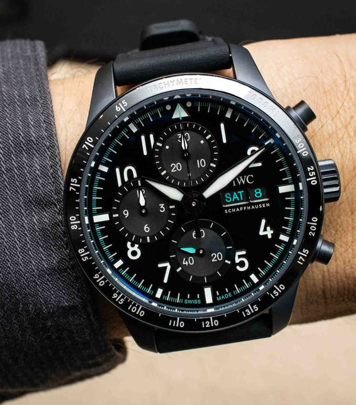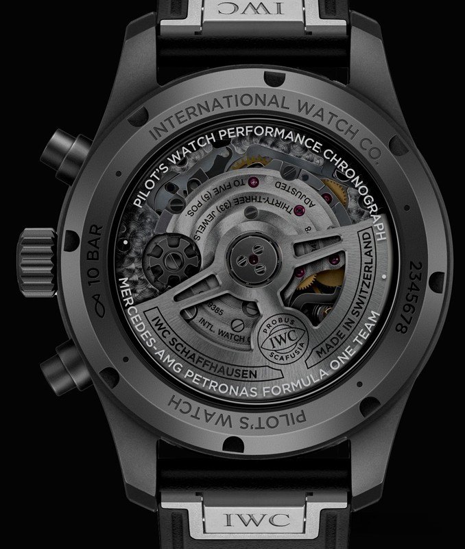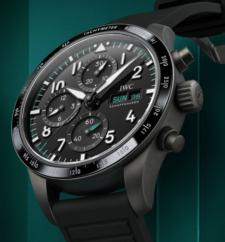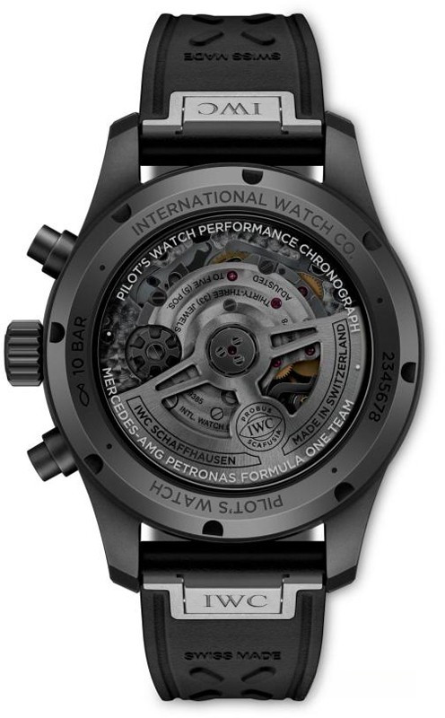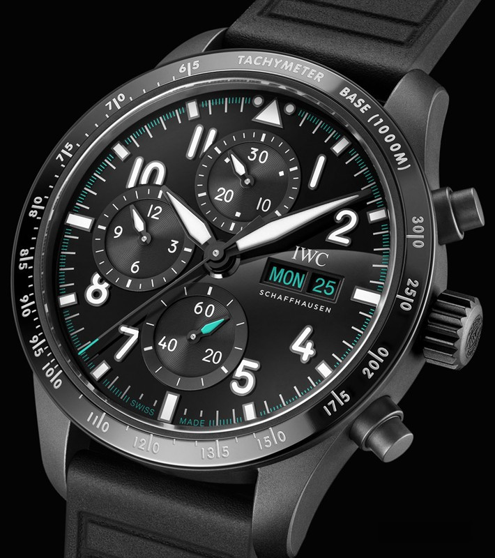Часы IWC Pilot`s Watches Performance Chronograph 41 представлены в корпусе размером 41 мм из кератаниума водонепроницаемостью 100 метров. Внутри корпуса установлен автоматический механизм, Калибр 69385, обладающий запасом хода 46 часов. На черном циферблате отображаются часы, минуты, секунды, дата, день недели, тахиметр. Часы поставляются на каучуковом ремешке с застежкой из кератаниума.
