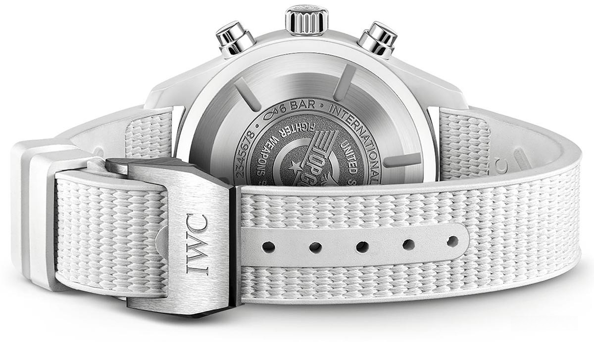 Часы IWC Pilot's Chronograph Top Gun Lake Tahoe представлены в корпусе из керамики размером 44.5 х 15.7 мм водонепроницаемостью 60 метров. Внутри корпуса установлен автоматический механизм, Калибр 69380, обладающий запасом хода 46 часов. На черном циферблате отображаются часы, минуты, секунды, дата, день недели. Часы комплектуются каучуковым ремешком с титановой застежкой. Серия ограничена - 1000 шт.