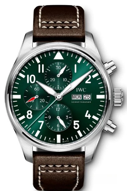 Часы Pilot’s Watch Chronograph Edition Racing Green, выпущенные лимитированной серией из 1000 экземпляров, представлены в корпусе из нержавеющей стали диаметром 43 мм с циферблатом зеленого цвета и люминесцентными стрелками с родиевым покрытием. Надежный часовой механизм с хронографом, калибр 79320, позволяет измерять и суммировать отрезки времени продолжительностью до 12 часов. Результаты измерений в минутах отображаются возле отметки «12 часов», а в часах – возле отметки «6 часов». Модель также оснащена указателями дня недели и даты. Внутренний корпус из мягкого железа предохраняет механизм часов от воздействия магнитных полей, а стекло защищено от смещения в случае резкого перепада давления. Этот спортивный и элегантный хронограф для пилотов предлагается с коричневым ремешком из телячьей кожи.