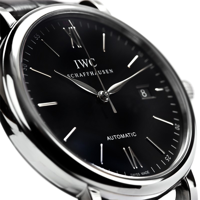 Часы IWC Portofino Automatic 40mm IW356502 выпущены в круглом корпусе из нержавеющей стали. Размер составляет 40 х 9,5 мм, водонепроницаемость 30 м. Внутри корпуса установлен автоматический механизм, Калибр 35110 обеспечивающий запас хода 42 часа. На черном циферблате отображаются часы, минуты, секунды, дата. Часы комплектуются ремешком из кожи аллигатора с вставкой из нержавеющей стали.
