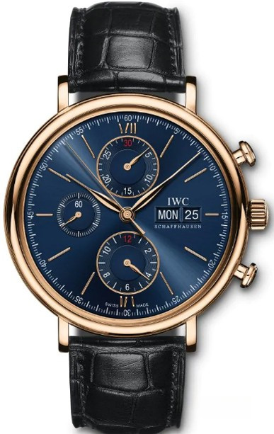 Элегантно спортивный дизайн кнопок и счетчиков хронографа Portofino Chronograph напоминает стиль 1960-х годов. Корпус выполнен из розового золота 18к. Синий циферблат с накладными римскими цифрами защищен выпуклым сапфировым стеклом. Надежный калибр 75320 с автоподзаводом обеспечивает 44-часовой запас хода. В комплекте к часам идет ремешок из кожи аллигатора.