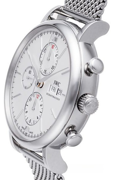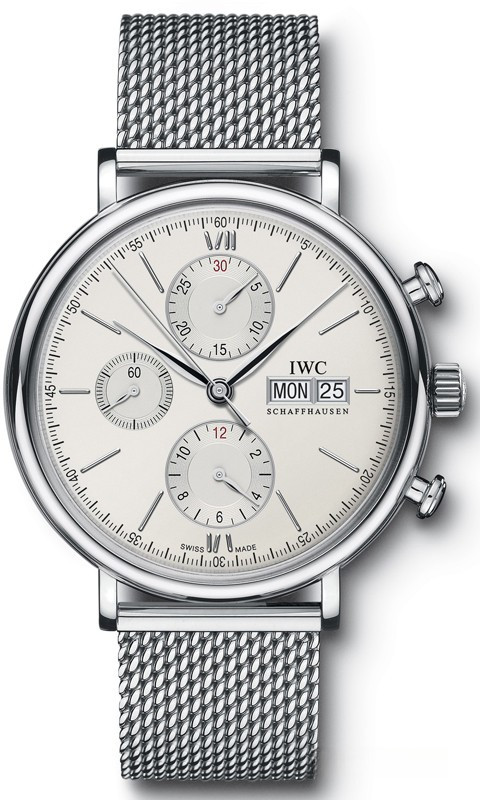 Часы с хронографом IWC Portofino Chronograph IW391009 выпущены в круглом корпусе из нержавеющей стали. Размер составляет 42 х 13,5 мм, водонепроницаемость 30 м. Внутри корпуса установлен автоматический механизм, Калибр 79320, обеспечивающий запас хода 44 часа. На серебристом циферблате отображаются часы, минуты, секунды, дата, день недели. Часы комплектуются браслетом из нержавеющей стали.