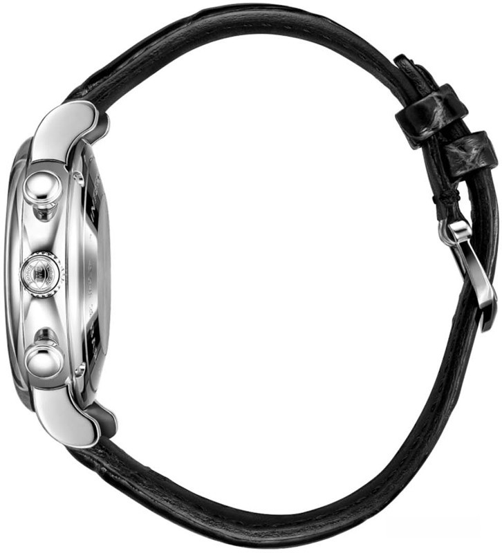 Элегантно спортивный дизайн кнопок и счетчиков хронографа Portofino Chronograph 39 напоминает стиль 1960-х годов. Корпус выполнен из нержавеющей стали. Черный циферблат с накладными маркерами и цифрами защищен выпуклым сапфировым стеклом. Надежный калибр 79350 с автоподзаводом обеспечивает 44-часовой запас хода. В комплекте к часам идет ремешок из кожи аллигатора.