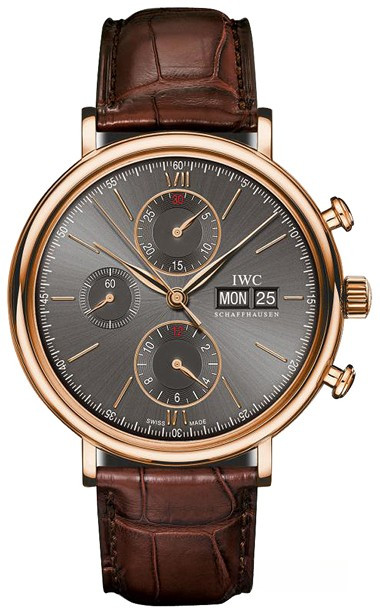 Часы с хронографом IWC Portofino Chronograph IW391021 выпущены в круглом корпусе из розового золота 18к. Размер составляет 42 х 13,5 мм, водонепроницаемость 30 м. Внутри корпуса установлен автоматический механизм, Калибр 79320, обеспечивающий запас хода 44 часа. На черном циферблате отображаются часы, минуты, секунды, дата, день недели. Часы комплектуются коричневым ремешком из кожи аллигатора с вставкой из розового золота 18к.
