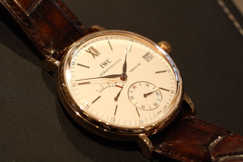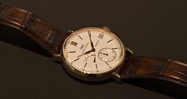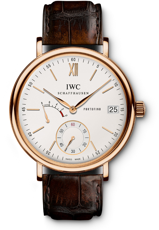 Часы IWC Portofino Hand-Wound Eight Days IW510107 выпущены в круглом корпусе из розового золота, 18к. Размер составляет 45 х 12 мм, водонепроницаемость 30 м. Внутри корпуса установлен механизм с ручным заводом, Калибр 59210, обеспечивающий запас хода 8 дней. На белом циферблате отображаются часы, минуты, секунды, дата, запас хода. Часы комплектуются ремешком из кожи аллигатора с вставкой из розового золота, 18к.