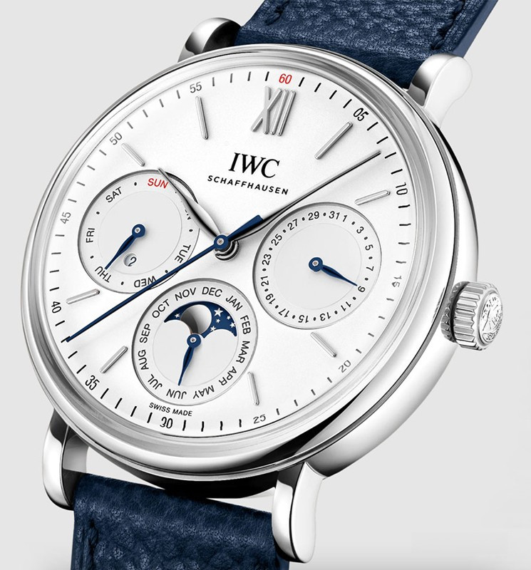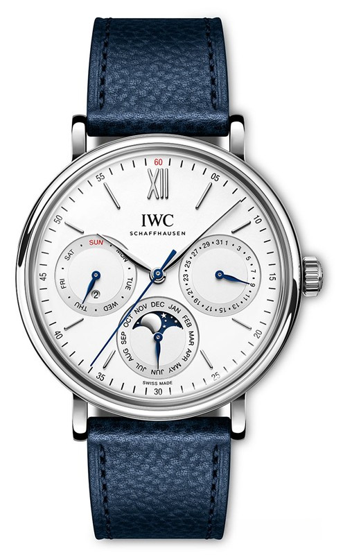 Часы IWC Portofino Perpetual Calendar представлены в корпусе размером 40 х 12.7 мм из нержавеющей стали водонепроницаемостью 50 метров. Внутри корпуса установлен автоматический механизм, Калибр 82650, обладающий запасом хода 60 часов. На серебристом циферблате отображаются часы, минуты, секунды, дата, день недели, месяц, фаза луны, цикл високосного года. Часы поставляются на кожаном ремешке с застежкой из нержавеющей стали.