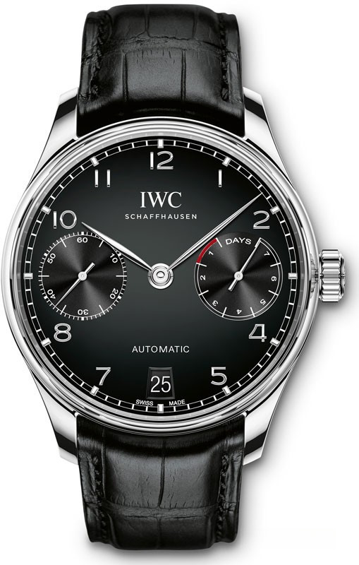 IWC Portugieser Automatic выпущены в корпусе из нержавеющей стали. Размер корпуса составляет 42.3 х 14.5 мм. Сапфировое стекло покрыто двусторонним антибликовым покрытием. На черном циферблате расположены центральные часовая и минутная стрелки, индикатор запаса хода на 3-х часах, апертура даты на 6-ти часах, малая секундная стрелка на 9-ти часах. Внутри корпуса установлен автоматический механизм IWC 52010 с запасом хода 7 дней. Корпус часов водонепроницаем до 30 метров. Часы комплектуются черным ремешком из кожи аллигатора с застежкой из нержавеющей стали.