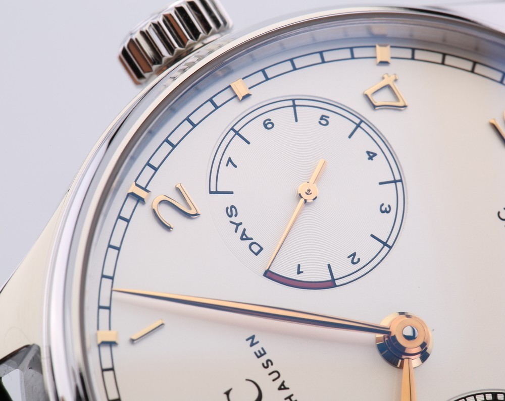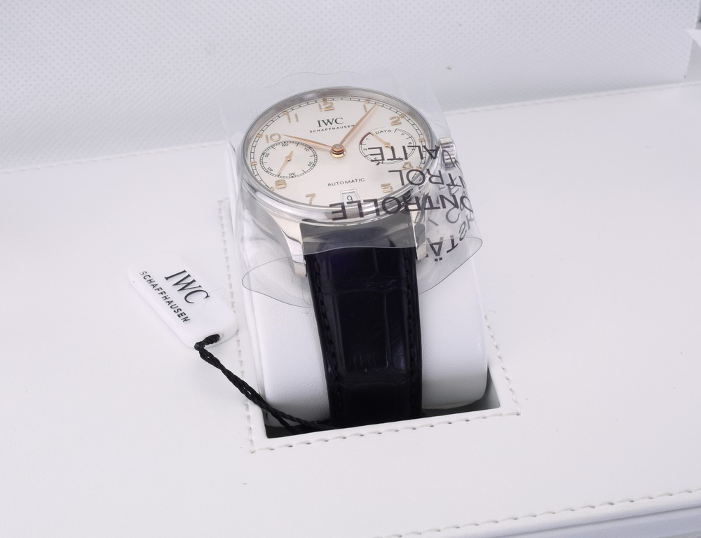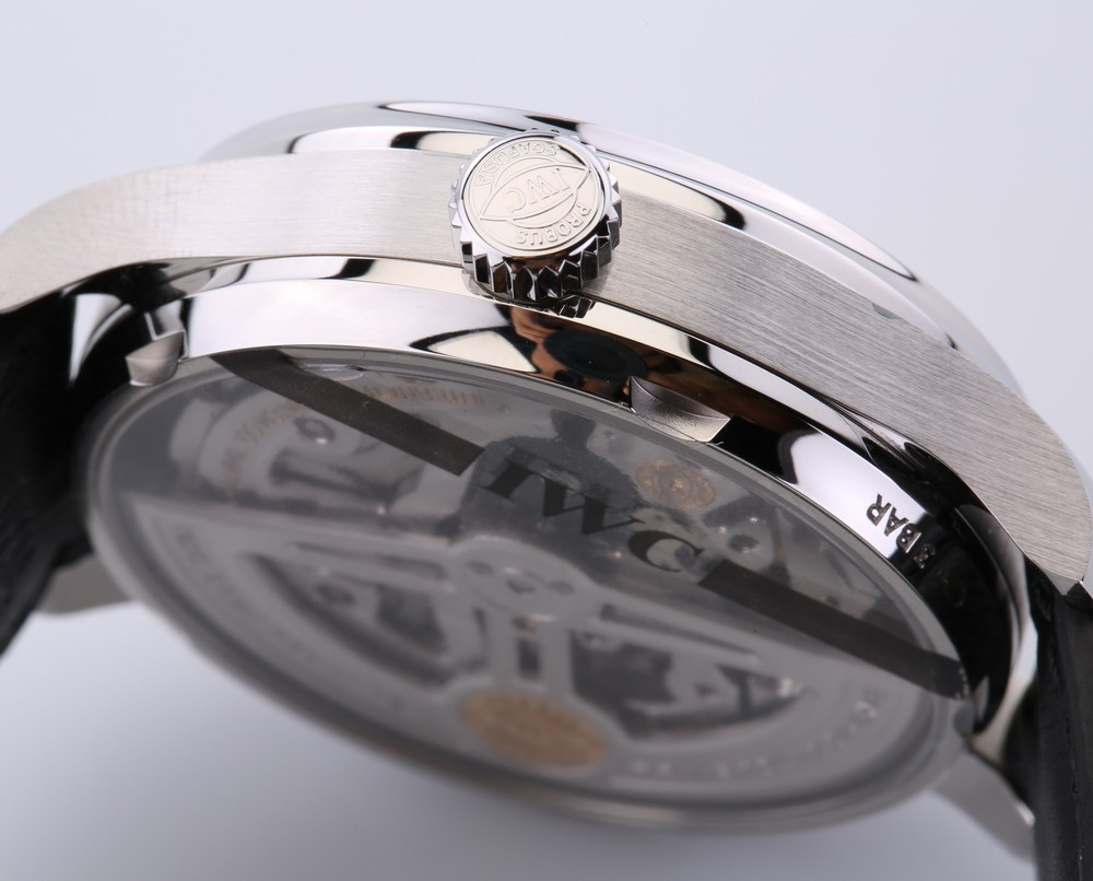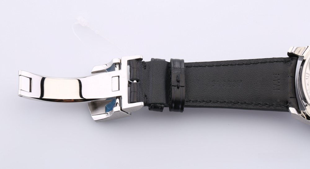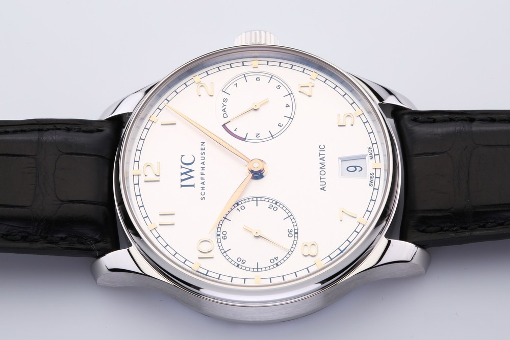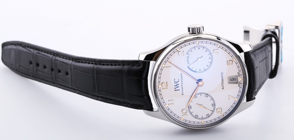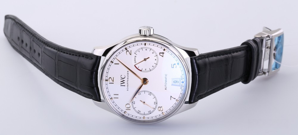 IWC Portugieser Automatic выпущены в корпусе из нержавеющей стали. Размер корпуса составляет 42.3 х 14.5 мм. Сапфировое стекло покрыто двусторонним антибликовым покрытием. На серебристом циферблате расположены центральные часовая и минутная стрелки, индикатор запаса хода на 3-х часах, апертура даты на 6-ти часах, малая секундная стрелка на 9-ти часах. Внутри корпуса установлен автоматический механизм IWC 52010 с запасом хода 7 дней. Корпус часов водонепроницаем до 30 метров. Часы комплектуются черным ремешком из кожи аллигатора с застежкой из нержавеющей стали.