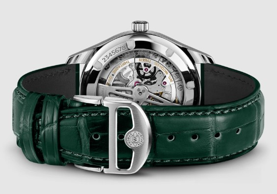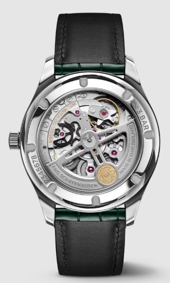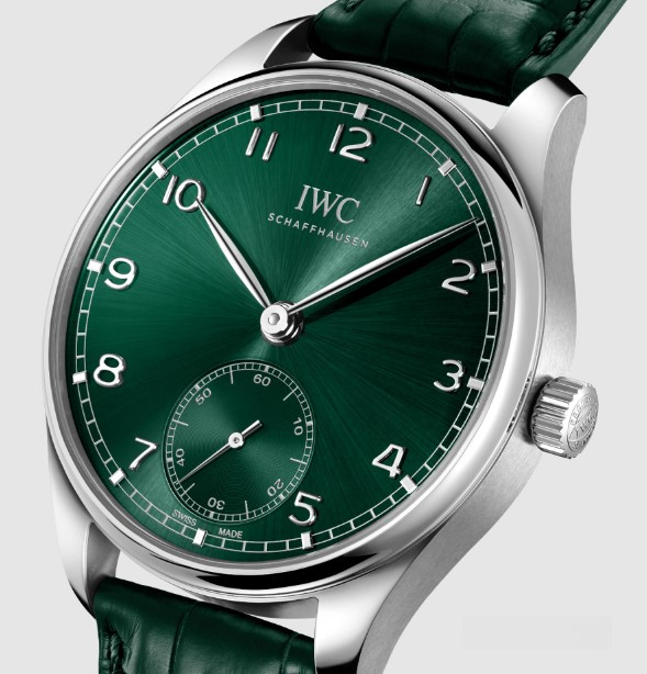 Часы IWC Portuguese Automatic 40 mm представлены в корпусе из нержавеющей стали размером 40.4 х 12.3 мм водонепроницаемостью 30 метров. Внутри корпуса находится автоматический механизм, Калибр 82200, обладающий запасом хода 60 часов. На зеленом циферблате отображаются часы, минуты, секунды. Часы поставляются на ремешке из кожи аллигатора с застежкой из нержавеющей стали.