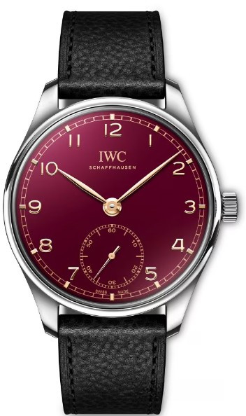 Часы IWC Portuguese Automatic 40 mm представлены в корпусе из нержавеющей стали размером 40.4 х 12.3 мм водонепроницаемостью 30 метров. Внутри корпуса находится автоматический механизм, Калибр 82200, обладающий запасом хода 60 часов. На красном циферблате отображаются часы, минуты, секунды. Часы поставляются на кожаном ремешке с застежкой из нержавеющей стали.