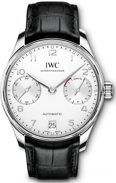 IWC Portugieser Automatic выпущены в корпусе из нержавеющей стали. Размер корпуса составляет 42.3 х 14.5 мм. Сапфировое стекло покрыто двусторонним антибликовым покрытием. На серебристом циферблате расположены центральные часовая и минутная стрелки, индикатор запаса хода на 3-х часах, апертура даты на 6-ти часах, малая секундная стрелка на 9-ти часах. Внутри корпуса установлен автоматический механизм IWC 52010 с запасом хода 7 дней. Корпус часов водонепроницаем до 30 метров. Часы комплектуются ремешком из кожи аллигатора с застежкой из нержавеющей стали.