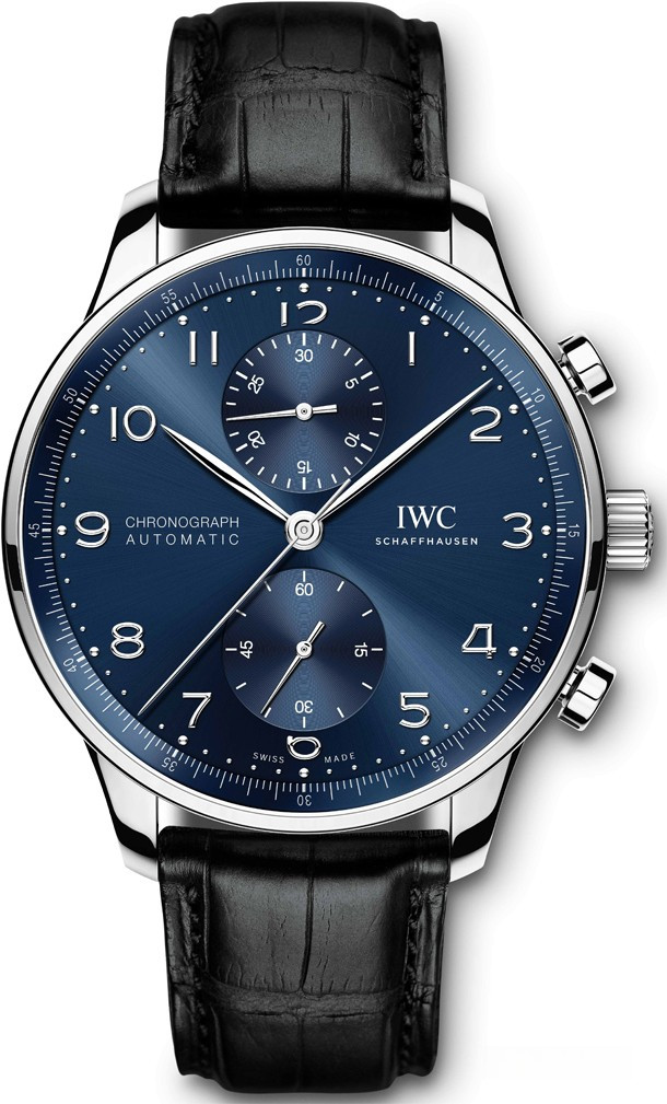 Часы IWC Portuguese Chronograph представлены в корпусе из нержавеющей стали размером 41 х 13.1 мм водонепроницаемостью 30 метров. Внутри корпуса установлен автоматический механизм, Калибр 69355, обладающий запасом хода 46 часов. На синем циферблате отображаются часы, минуты, секунды, счетчики хронографа. Часы поставляются на ремешке из кожи аллигатора с вставкой из нержавеющей стали.