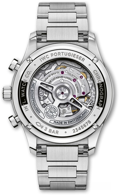 Часы IWC Portuguese Chronograph представлены в корпусе из нержавеющей стали размером 41 х 13 мм водонепроницаемостью 30 метров. Внутри корпуса установлен автоматический механизм, Калибр 69355, обладающий запасом хода 46 часов. На серебристом циферблате отображаются часы, минуты, секунды, счетчики хронографа. Часы поставляются на браслете из нержавеющая сталь.