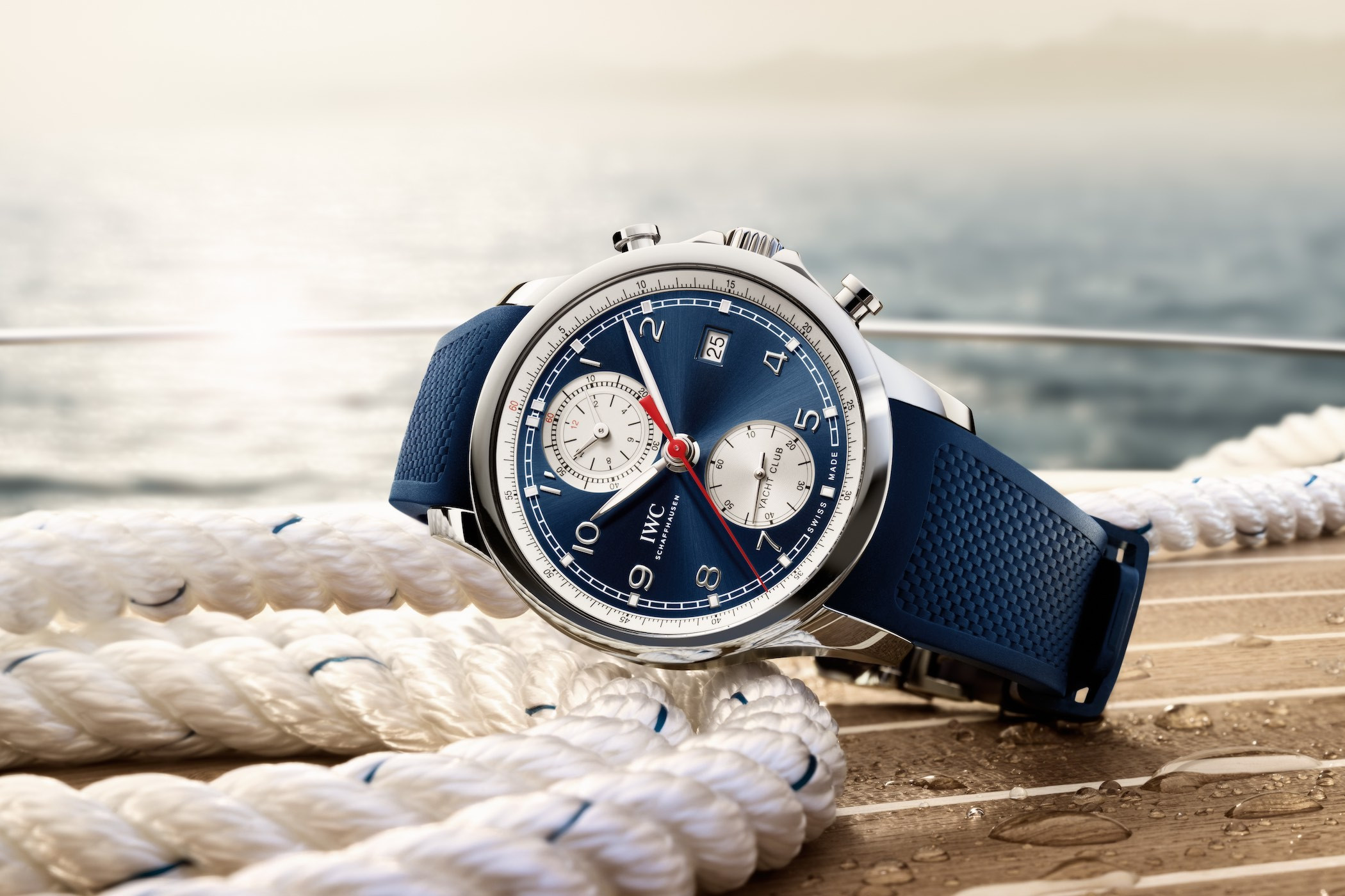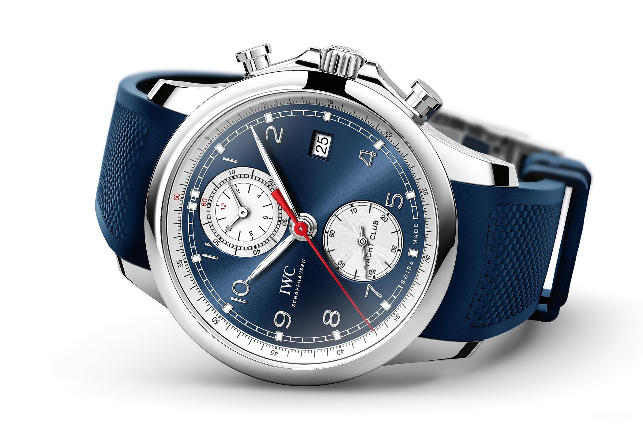 Portugieser Yacht Club Chronograph – самая спортивная модель традиционного часового семейства. По желанию многих часовых любителей к 75-летию коллекции Portugieser (Португизер) эти часы выпущены в более изящном корпусе, а их диаметр уменьшился с 45,4 до 43,5 мм. Данный хронограф с водонепроницаемостью 6 бар приводится в движение надежным калибром 89361, а его спортивный характер подчеркивают такие функции, как flyback, дополнительная шкала с четвертьсекундной разметкой для измерения коротких интервалов и аналоговый индикатор, расположенный на внутреннем циферблате, для замера более длительных промежутков времени. Часы Portugieser Yacht Club Chronograph оснащены выступами для защиты заводной головки и являются единственной моделью Portugieser, стрелки и часовая разметка которой покрыты люминесцентным составом. Модель представлена в корпусе из нержавеющей стали с грифельно-серым или посеребренным циферблатом, а также из 18-каратного розового золота с посеребренным циферблатом. В часах из нержавеющей стали (Артикул 390503) грифельно-серый циферблат украшен узором в виде солнечных лучей и выполнен в одной цветовой гамме с находящейся на возвышении четвертьсекундной шкалой. Благодаря этим изменениям дизайн хронографа стал еще благороднее и гармоничнее.