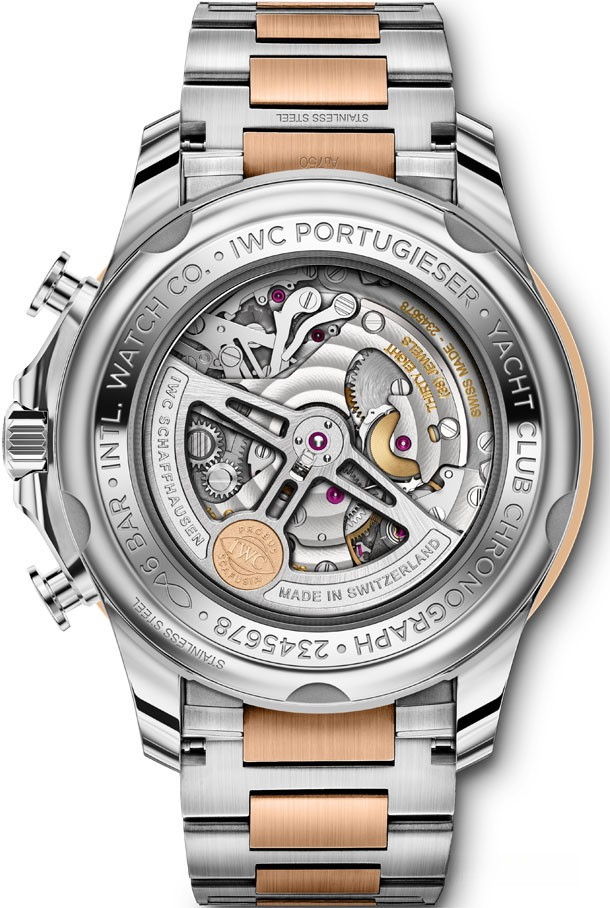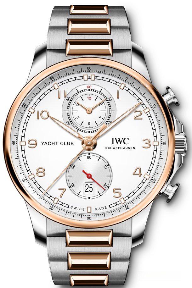 Спортивная модель Portugieser Yacht Club Chronograph в морском стиле сочетает неизменно элегантный дизайн, высокую прочность и водонепроницаемость 6 бар. Благодаря таким характеристикам эти универсальные часы уместны как на суше, так и на море. Безель тонкой работы и плоское корпусное кольцо придают 44-миллиметровому корпусу из нержавеющей стали с золотыми акцентами подчеркнуто элегантные пропорции. Циферблат этого спортивного хронографа демонстрирует хорошо узнаваемые особенности дизайна Portugieser, такие как характерная минутная шкала и накладные арабские цифры. Данная модель имеет корпус из 18-каратного золота 5N, посеребренный циферблат, покрытые золотом стрелки и накладные метки из 18-каратного золота. Мануфактурный калибр IWC 89361 с функцией flyback отображает результаты хронометража на едином счетчике в положении «12 часов» и имеет запас хода 68 часов. Высококачественный браслет из нержавеющей стали и 18-каратного красного золота идеально прилегает к запястью.