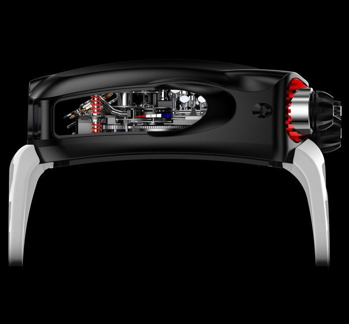 Часы Jacob & Co. Bugatti Chiron Tourbillon представлены в корпусе из титана с покрытием DLC размером 55 x 44 x 20 мм и водонепроницаемостью до 30 метров. Внутри корпуса установлен механизм с ручным заводом, Калибр JCAM37 с запасом хода 60 часов. На серебристом скелетированном циферблате отображаются часы, минуты, секунды, запас хода, турбийон. Часы комплектуются каучуковым ремешком с вставкой из титана. Серия ограничена - 1 шт.