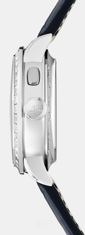 Часы Jaeger-LeCoultre Master Grande Tradition Gyrotourbillon 3 Set обладают круглым корпусом из белого золота 18к, размеры которого составляют 43.5 x 15.5 мм, водонепроницаемостью до 50 м. На торце рифленой заводной головки, расположенной на 3 часах, имеется логотип в виде больших букв JL. Сапфировое стекло установлено на передней стороне часового корпуса (с антибликовым покрытием) и на его завинчивающейся задней крышке. Циферблат серебристого цвета, со стрелками синего цвета. На циферблате расположены накопители хронографа. Модель оснащена мануфактурным швейцарским механизмом с ручным заводом. Наличие турбийона подчеркивает функционал данной модели. Калибр 176 с 48-часовым запасом хода, функциями индикации часов, минут и индикатором день/ночь. Калибр отменно отделан и декорирован. Поставляется на ремешке из кожи аллигатора с вставкой из белого золота 18к. Корпус инкрустирован белыми багетными бриллиантами.