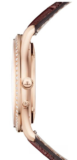 Мужские часы Master Ultra Thin Moon 39 комплектуются автоматическим механизмом, Калибр JLC 925, обладающий запасом хода 38 часов. Корпус размером 39 мм изготовлен из розового золота 18к, водонепроницаемость до 50 метров. На серебристом циферблате отображаются часы, минуты, секунды, дата, фаза луны. Часы комплектуются ремешком из кожи аллигатора с вставкой из розового золота 18к. Безель из белых бриллиантов.
