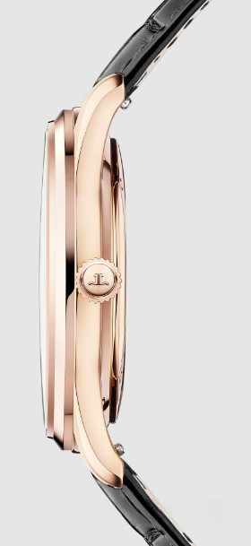 Мужские часы Master Ultra Thin Perpetual комплектуются автоматическим механизмом, Калибр JLC 868, обладающий запасом хода 70 часов. Корпус размером 39 х 9.2 мм изготовлен из розового золота 18к, водонепроницаемость до 50 метров. На белом циферблате отображаются часы, минуты, секунды, дата, день недели, месяц, фаза луны, год. Часы комплектуются ремешком из кожи аллигатора с золотой застежкой.