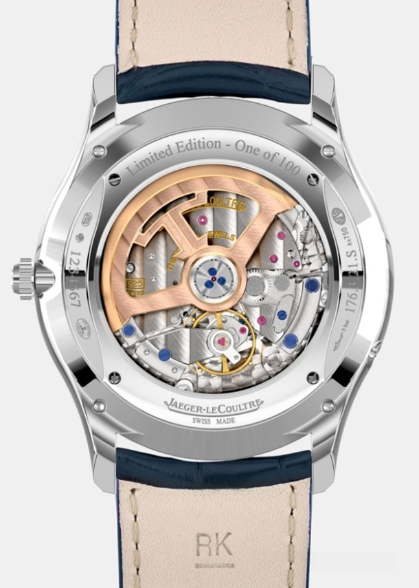 Мужские часы Master Ultra Thin Perpetual Enamel комплектуются автоматическим механизмом, Калибр JLC 868А/2, обладающий запасом хода 70 часов. Корпус размером 39 х 10.44 мм изготовлен из белого золота 18к, водонепроницаемость до 50 метров. На синем гильошированном циферблате отображаются часы, минуты, секунды, дата, день недели, месяц, фаза луны, год. Часы комплектуются ремешком из кожи аллигатора с вставкой из белого золота 18к. Серия ограничена - 100 шт.