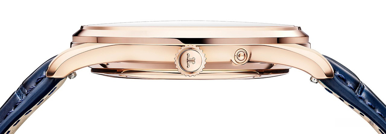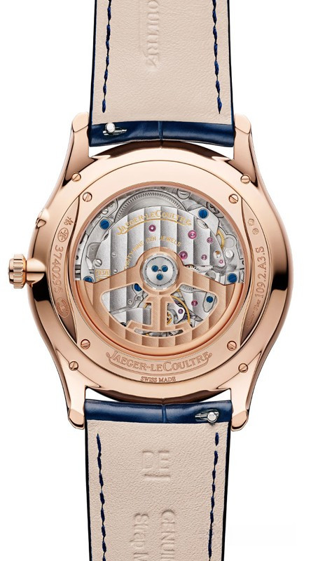 Часы Jaeger-LeCoultre Master Control Master Ultra Thin Reserve de Marche обладают круглым корпусом из розового золота 18к, размеры которого составляют 39 х 9.85 мм, водонепроницаемостью до 50 м. На торце рифленой заводной головки, расположенной на 3 часах, имеется логотип в виде больших букв JL. Сапфировое стекло установлено на передней стороне часового корпуса (с антибликовым покрытием) и на его завинчивающейся задней крышке. Циферблат синего цвета. Модель оснащена мануфактурным швейцарским автоматическим механизмом. Калибр 938 с 70-часовым запасом хода, функциями индикации часов, минут, (посредством соответствующих центральных стрелок), секунд, даты, запаса хода. Калибр отменно отделан и декорирован. Поставляется на ремешке из кожи аллигатора с золотой застежкой.