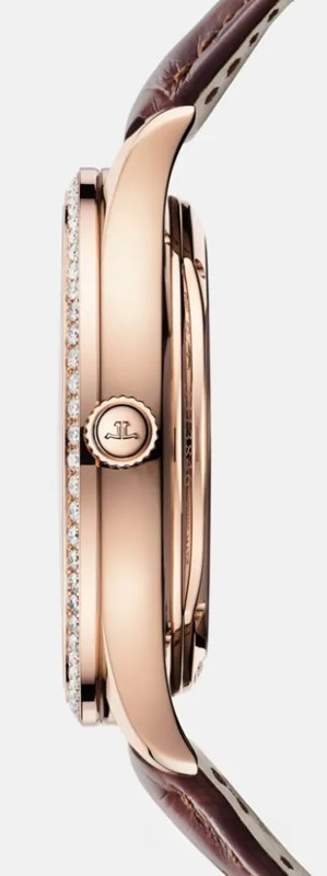Часы Jaeger-LeCoultre Master Ultra Thin Tourbillon представлены в корпусе из розового золота 18к размером 40 х 10.7 мм и водонепроницаемостью 50 м. Внутри корпуса установлен автоматический механизм, Калибр 978G, обладающий запасом хода 48 часов. На бежевом циферблате с белыми бриллиантами отображаются часы, минуты, секунды, клеть турбийона на 6-ти часасх. Часы комплектуются ремешком из кожи аллигатора с вставкой из розового золота 18к. Безель из белых бриллиантов.