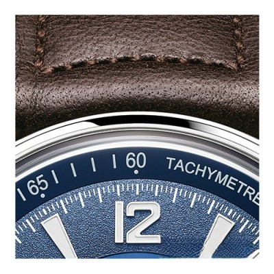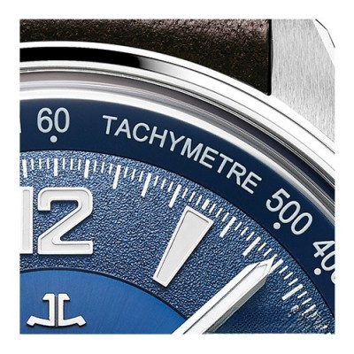 Часы Jaeger-LeCoultre Polaris Chronograph комплектуются автоматическим механизмом, Калибр JLC 751H, обладающий запасом хода 65 часов. Корпус размером 42 х 11.9 мм изготовлен из нержавеющей стали, водонепроницаемость до 100 метров. На синем циферблате отображаются часы, минуты, секунды, тахиметр, накопители хронографа. Часы комплектуются кожаным ремешком с вставкой из нержавеющей стали.