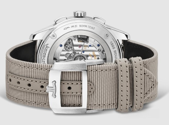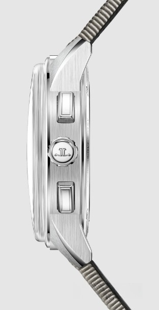 Часы Jaeger-LeCoultre Polaris Chronograph комплектуются автоматическим механизмом, Калибр JLC 761, обладающий запасом хода 65 часов. Корпус размером 42 х 11.9 мм изготовлен из нержавеющей стали, водонепроницаемость до 100 метров. На сером циферблате отображаются часы, минуты, секунды, тахиметр, накопители хронографа. Часы комплектуются текстильным ремешком с застежкой из нержавеющей стали.
