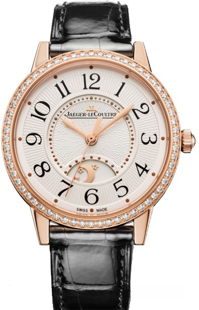 Женские часы Rendez-Vous Night & Day комплектуются автоматическим механизмом, Калибр JLC 898A/1, обладающий запасом хода 40 часов. Корпус размером 34 х 8.52 мм изготовлен из розового золота 18к, водонепроницаемость до 30 метров. На серебристом гильошированном циферблате отображаются часы, минуты, секунды, индикатор день/ночь. Часы комплектуются ремешком из кожи аллигатора с вставкой из розового золота 18к. Безель из белых бриллиантов.