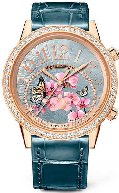 Часы Jaeger-LeCoultre Rendez-Vous Sonatina представлены в корпусе размером 38.2 х 5.57 мм из розового золота 18к водонепроницаемостью 50 метров. Циферблат украшен волнистым гильошированным мотивом, который усиливает природную красоту перламутра. На этом сияющем фоне изображена композиция из орхидей и бабочек. Маленькое овальное кольцо с бриллиантами окружает изображение. Среди цветов виден индикатор день/ночь. Все функции часов поддерживаются благодаря техническому совершенству мануфактурного Калибра 735 компании Jaeger-LeCoultre. Автоматический механизм, разработанный специально для моделей Sonatina, расположен под прозрачной задней крышкой из сапфирового стекла. Ремешок часов изготовлен из кожи аллигатора и подобран по цвету циферблата. Часы Rendez-Vous Sonatina доступны исключительно в бутиках Jaeger-LeCoultre и ограничены 8 экземплярами.